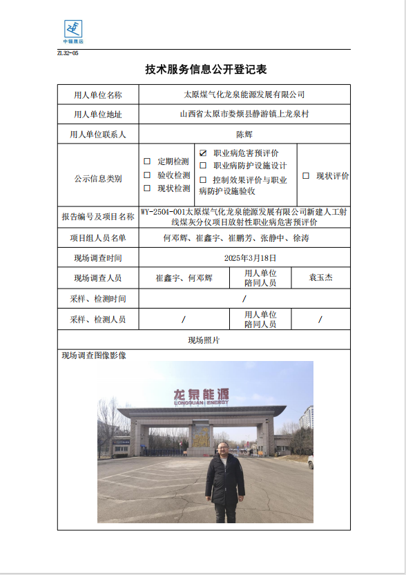 WY-2504-001太原煤气化龙泉煤能源发展有限公司(预评价)-技术服务信息公开登记表