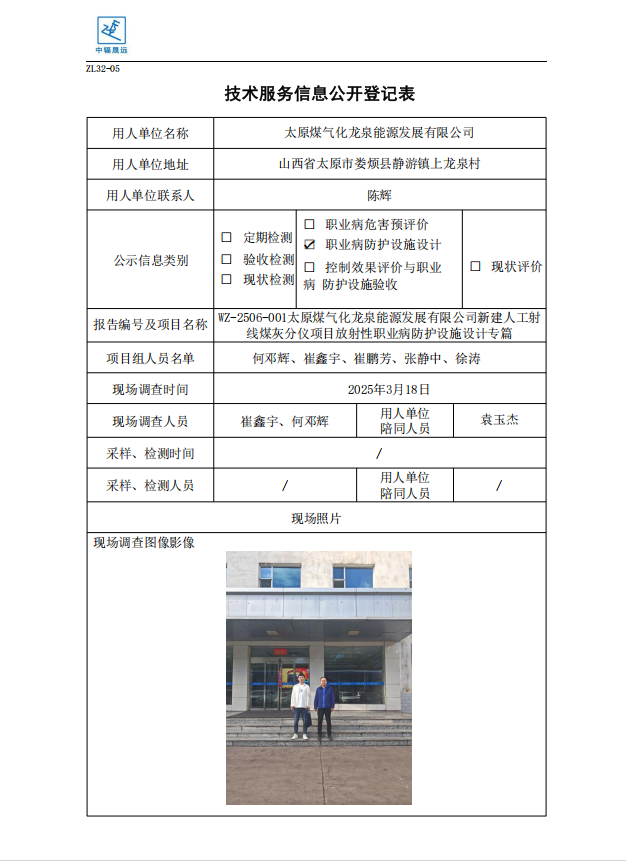 WZ-2506-001太原煤气化龙泉煤能源发展有限公司(设计专篇)-技术服务信息公开登记表